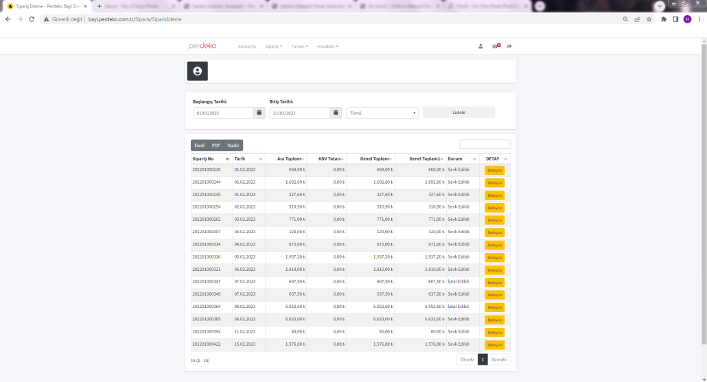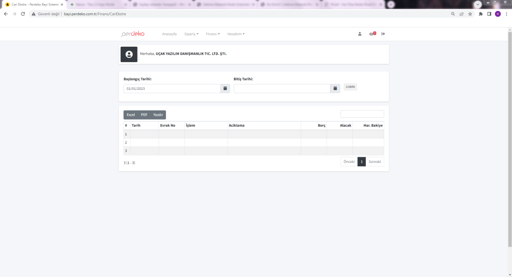 Perdeko Bayi Sistemi Ekran Görüntüleri