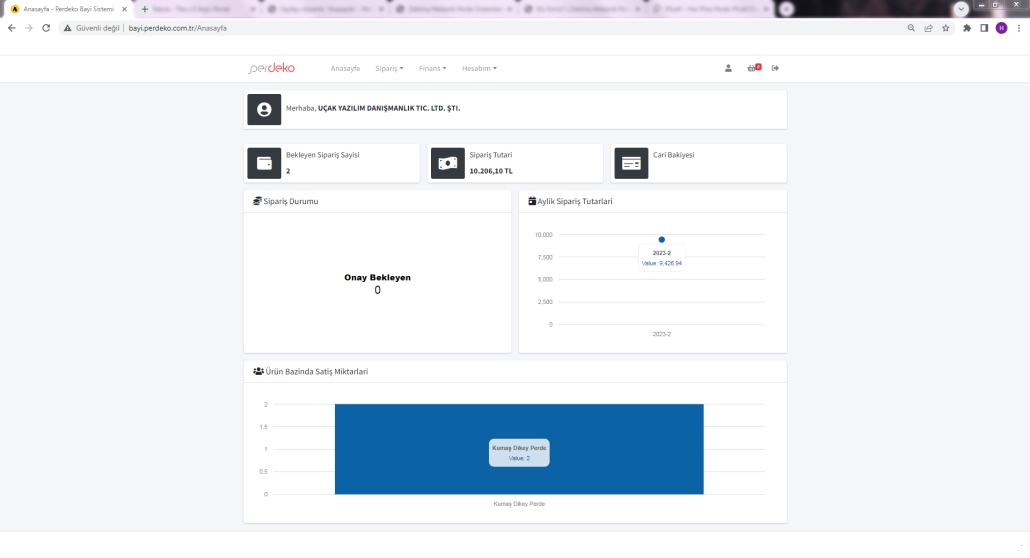 Aylık ve ürün bazında çekmiş olduğunuz siparişlerin raporlamasını mevcuttur.